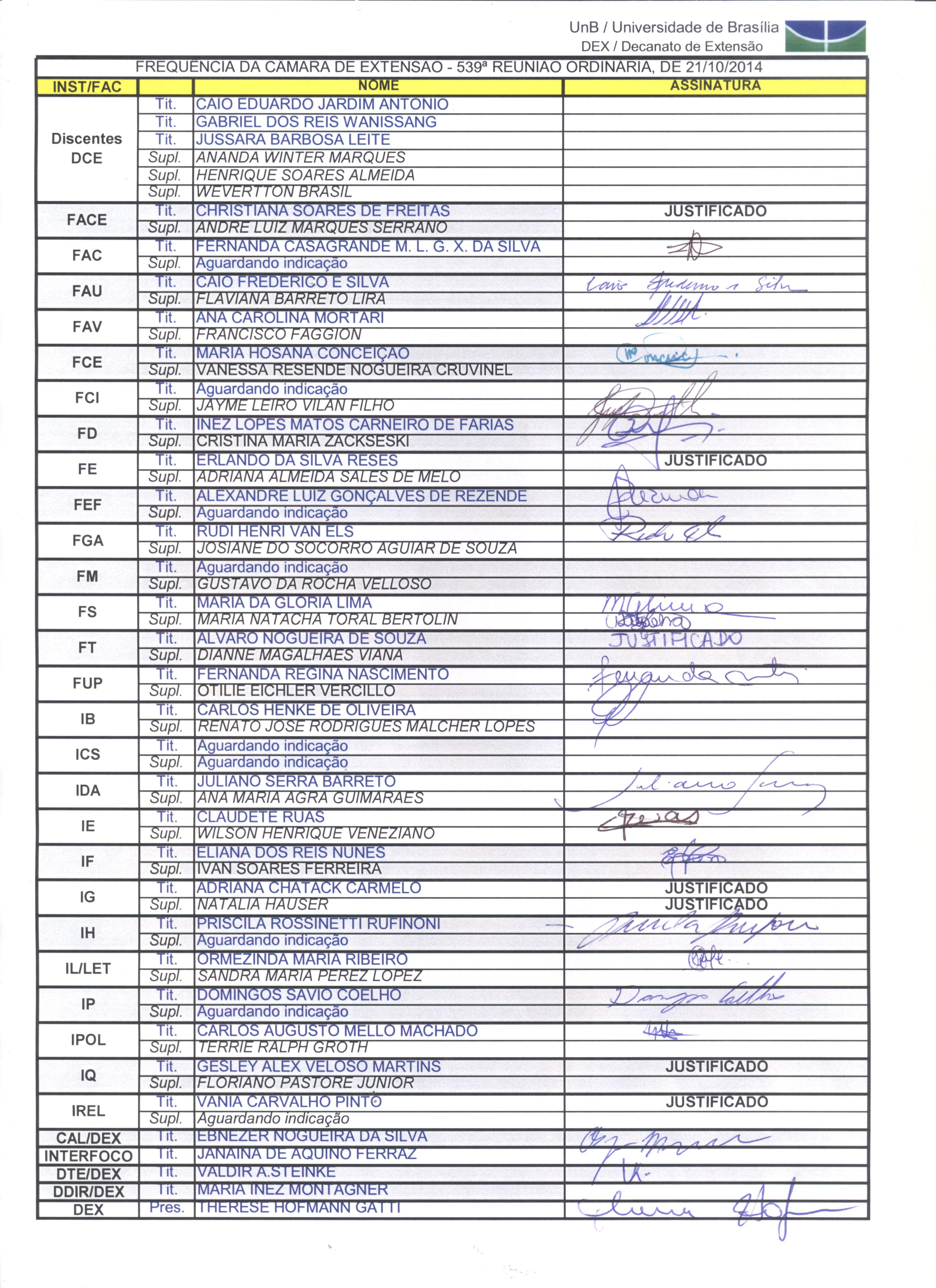 Frequências Reuniões Coordenadores de Extensão 2014