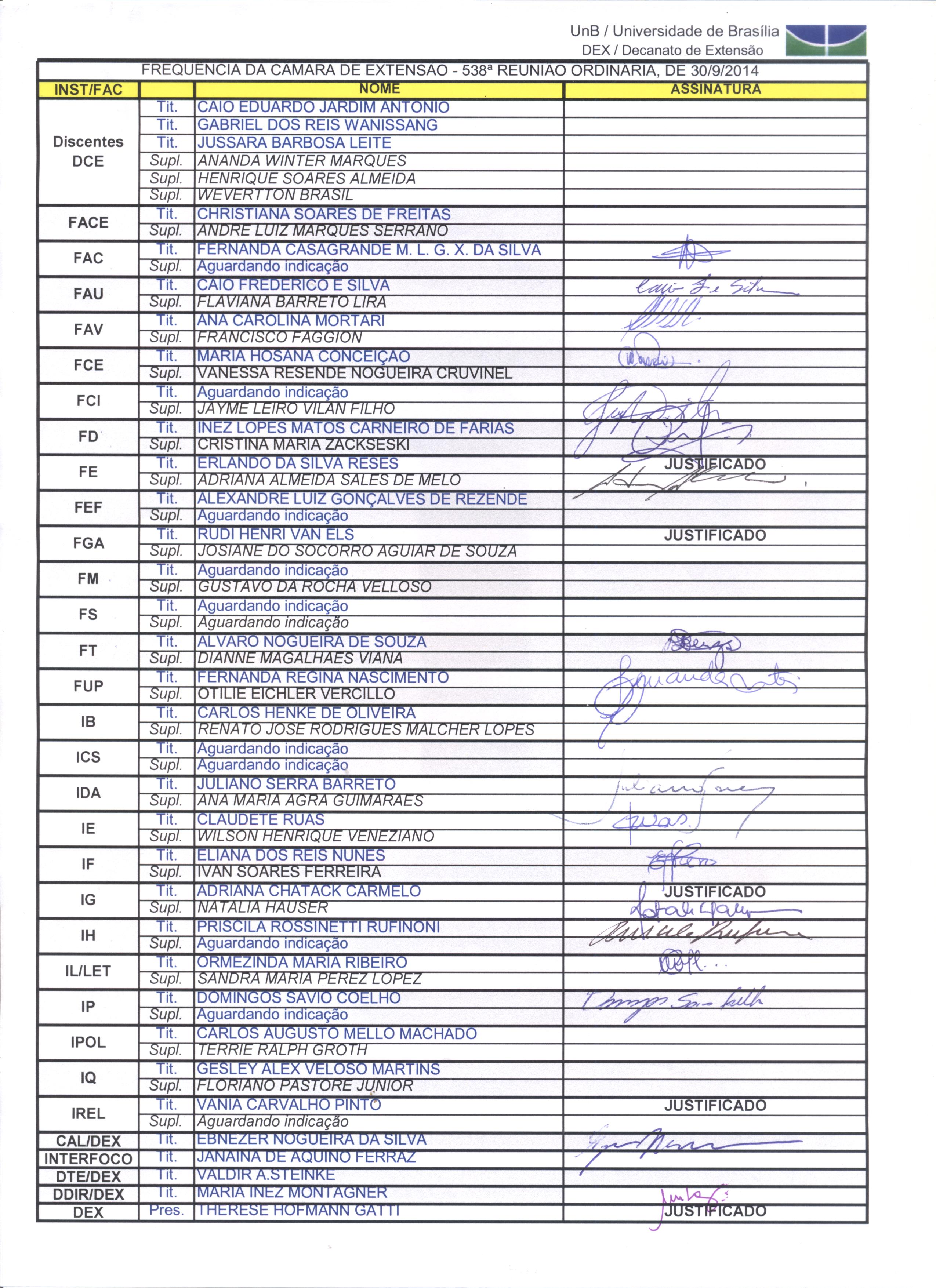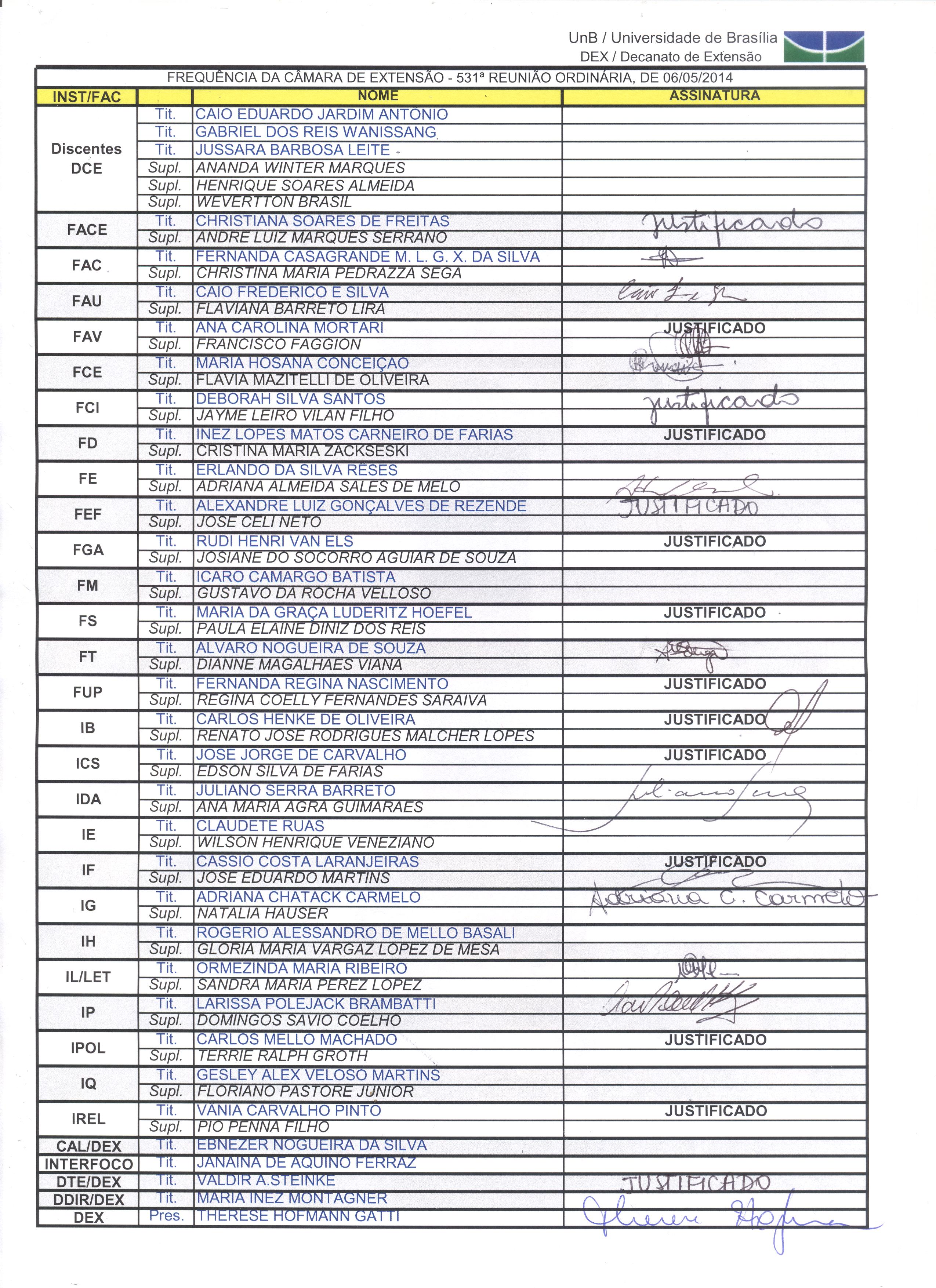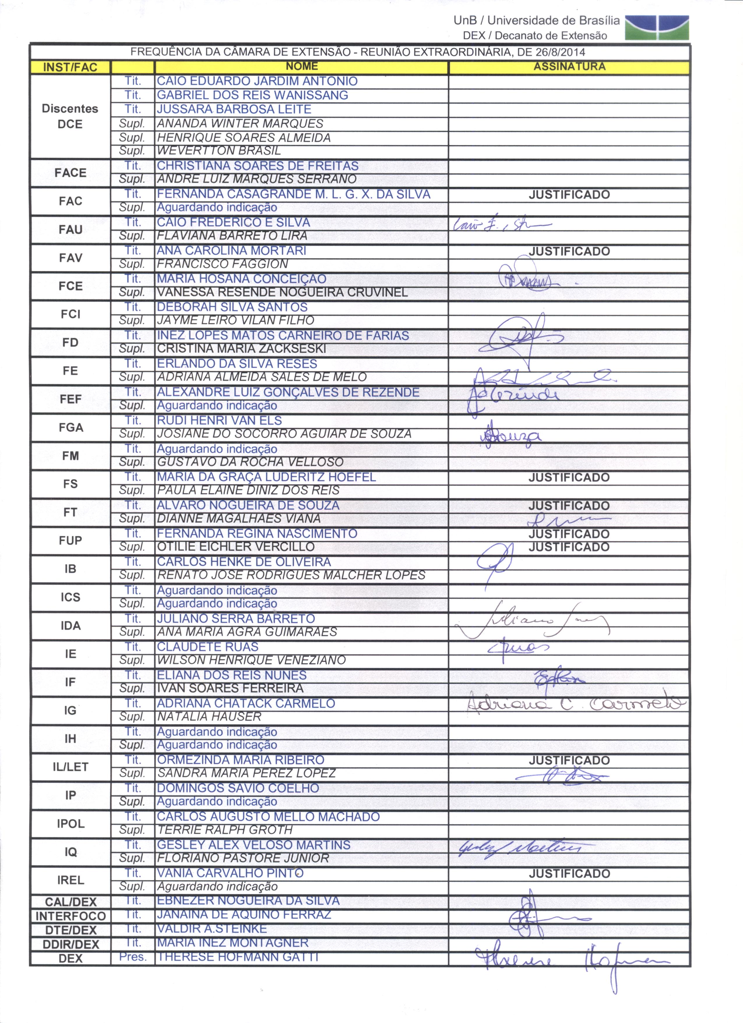 Membros da Câmara de Extensão