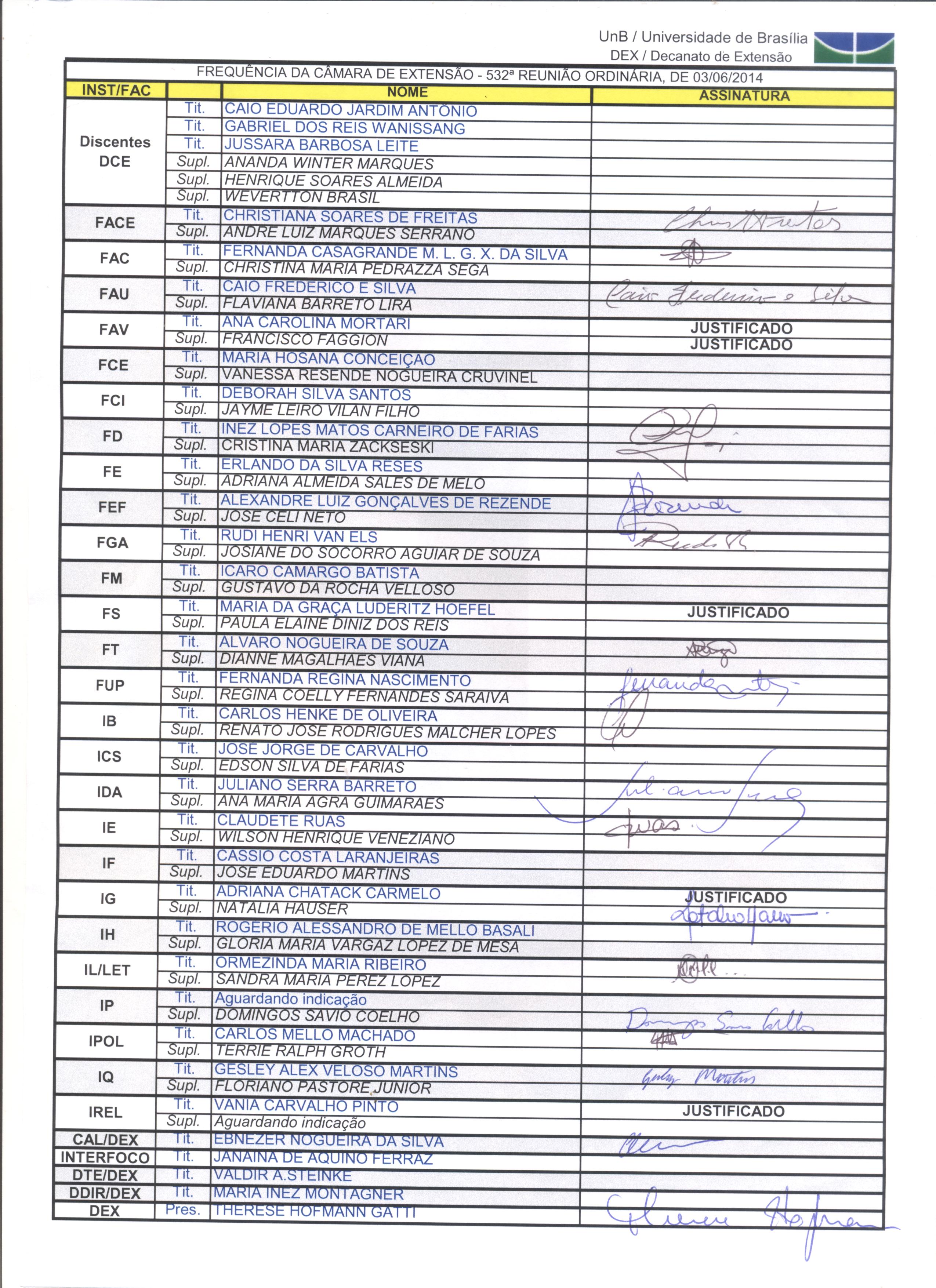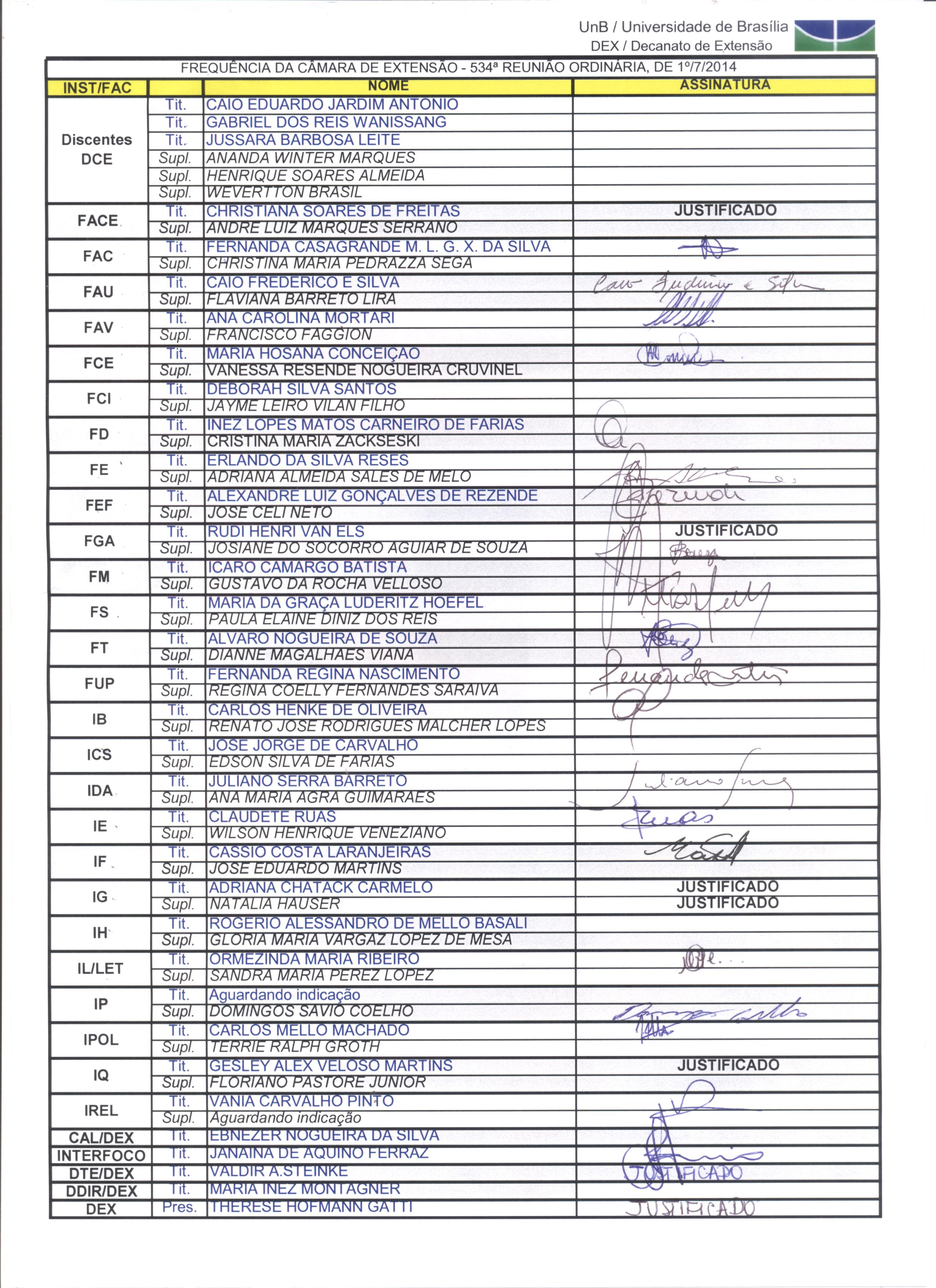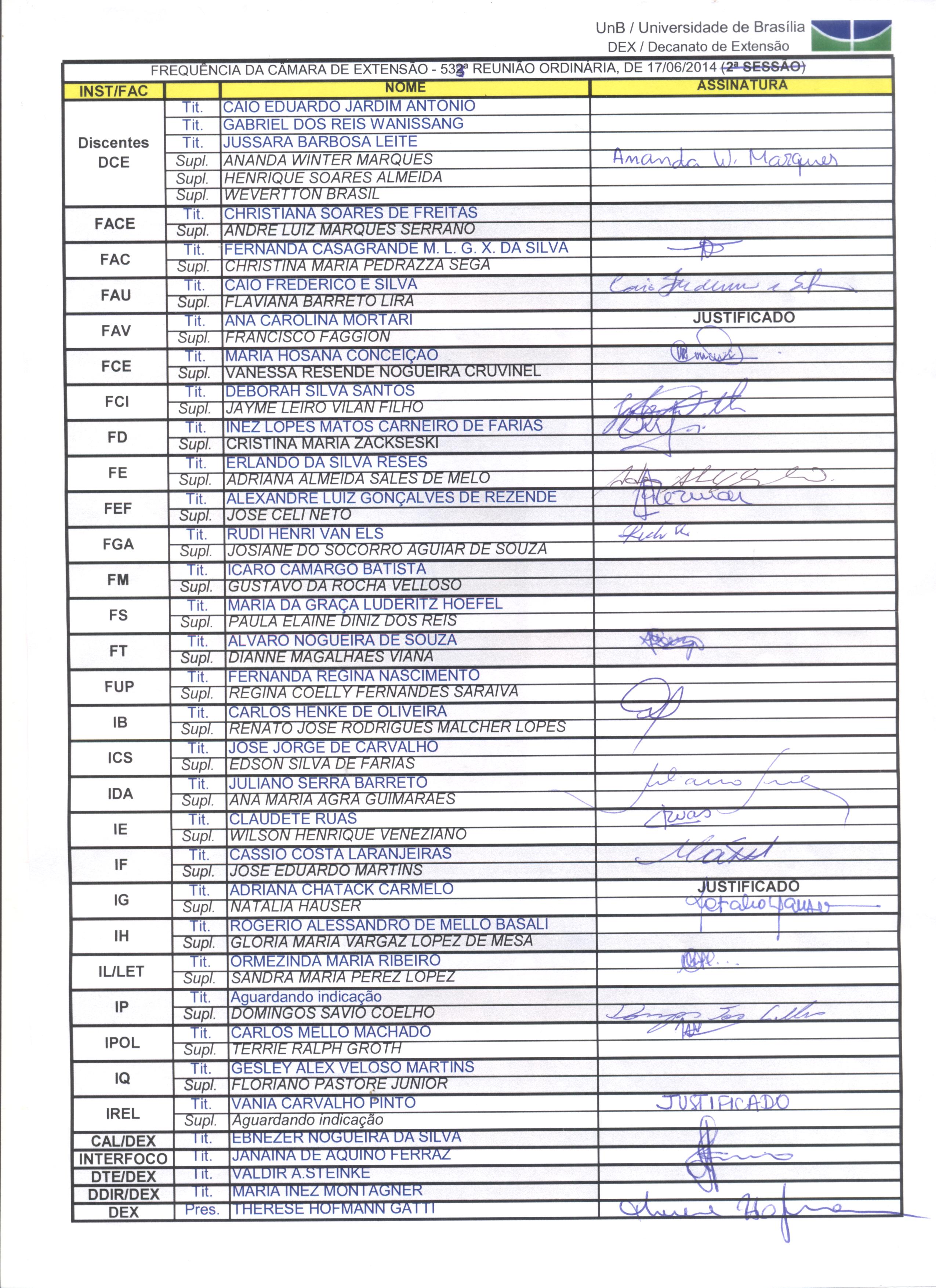 Membros da Câmara de Extensão