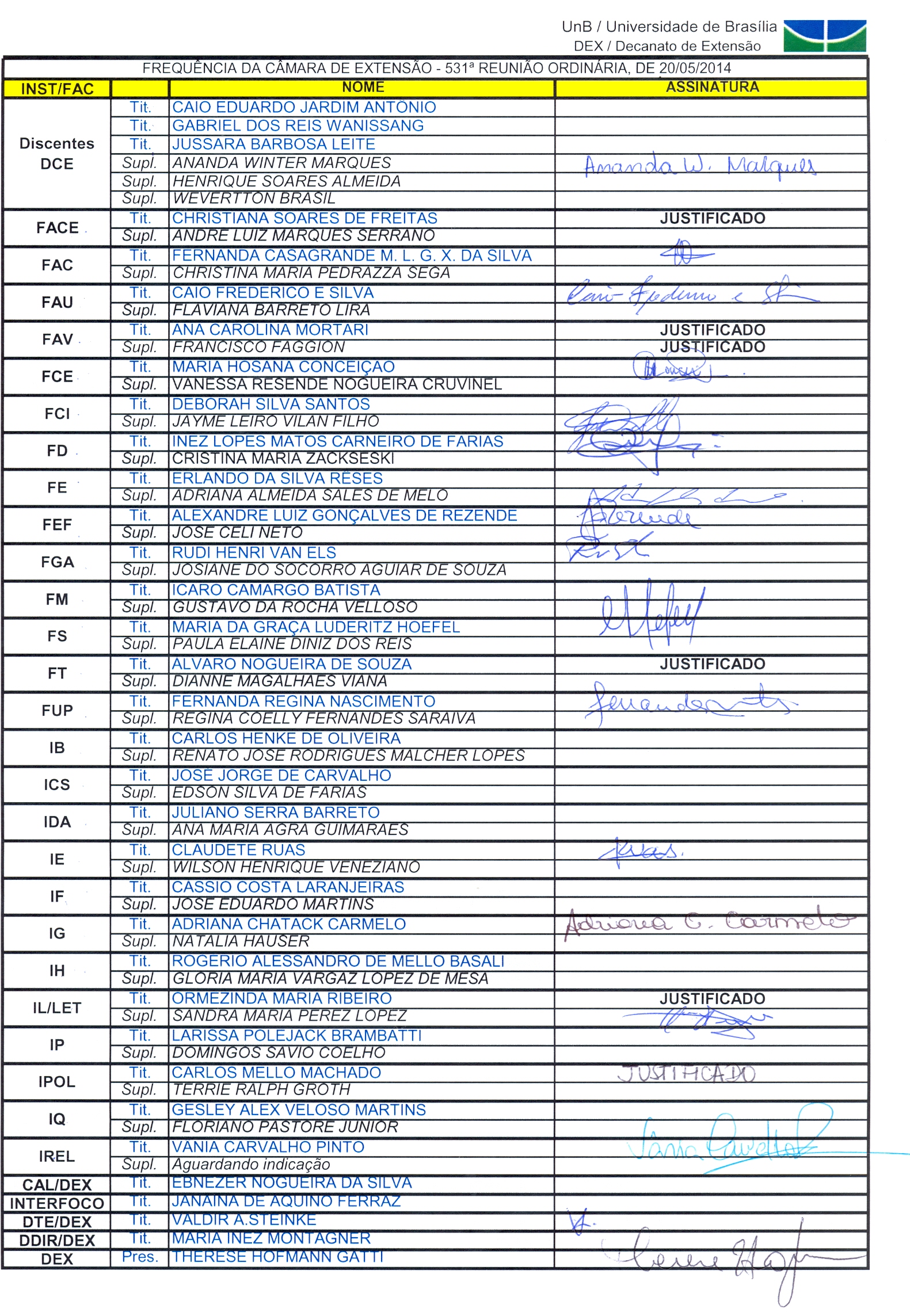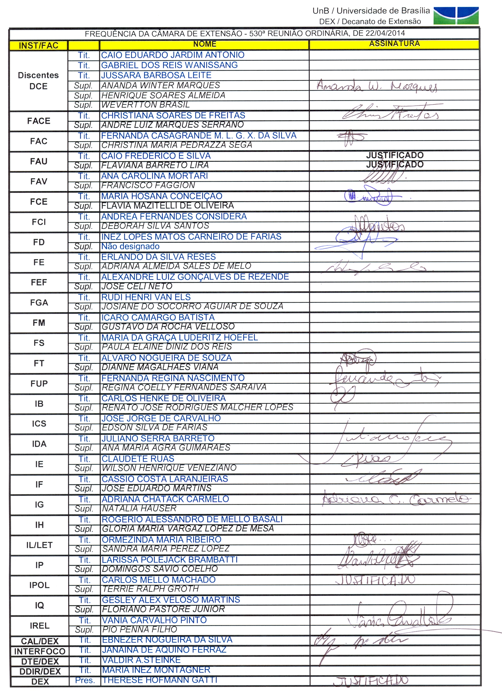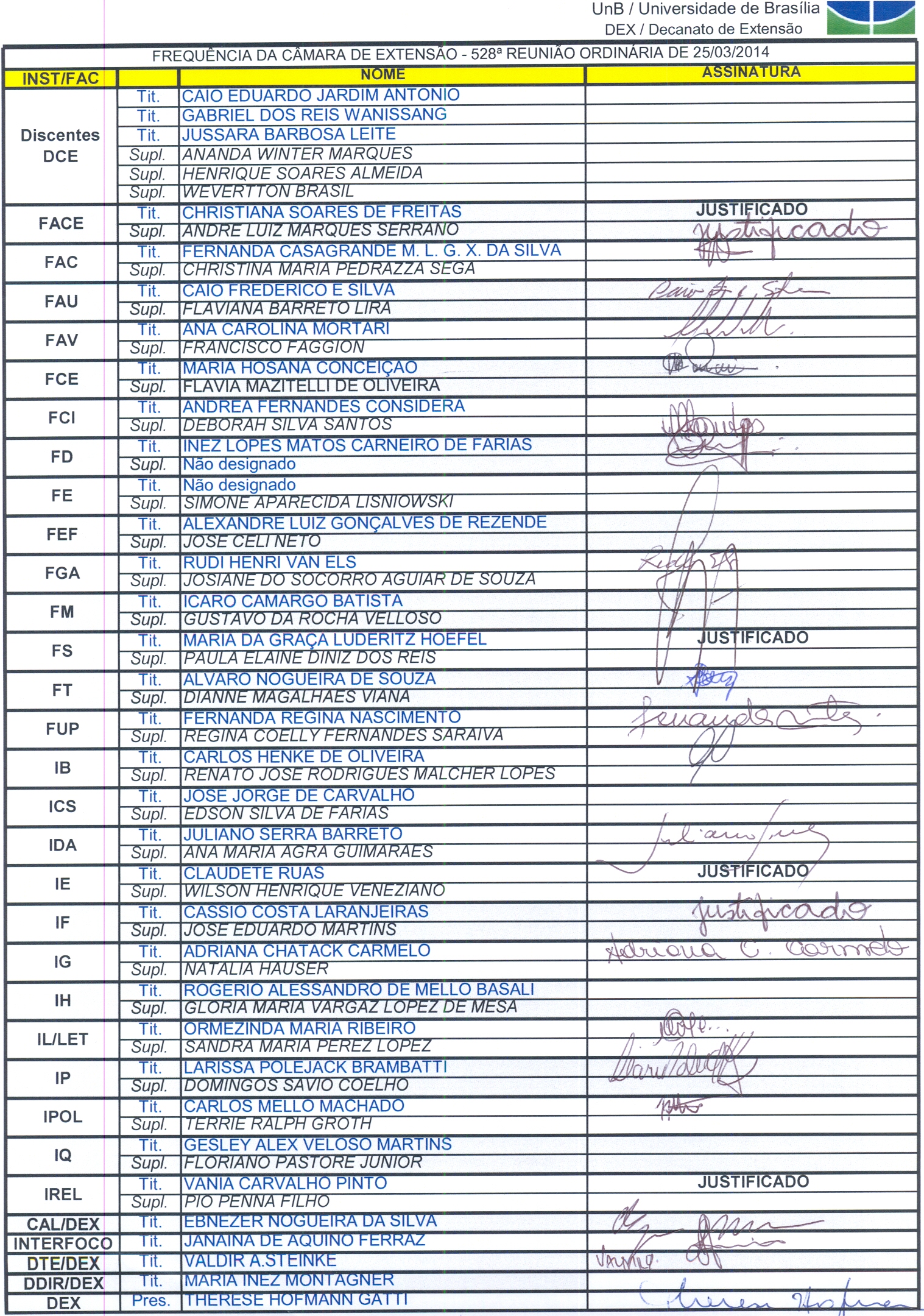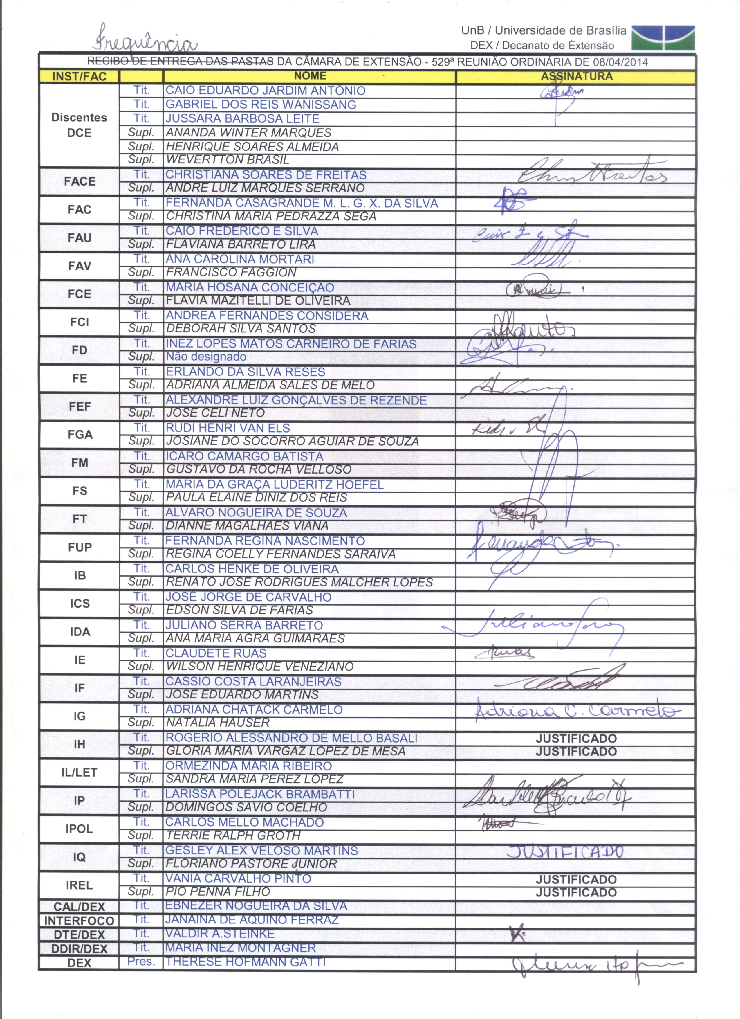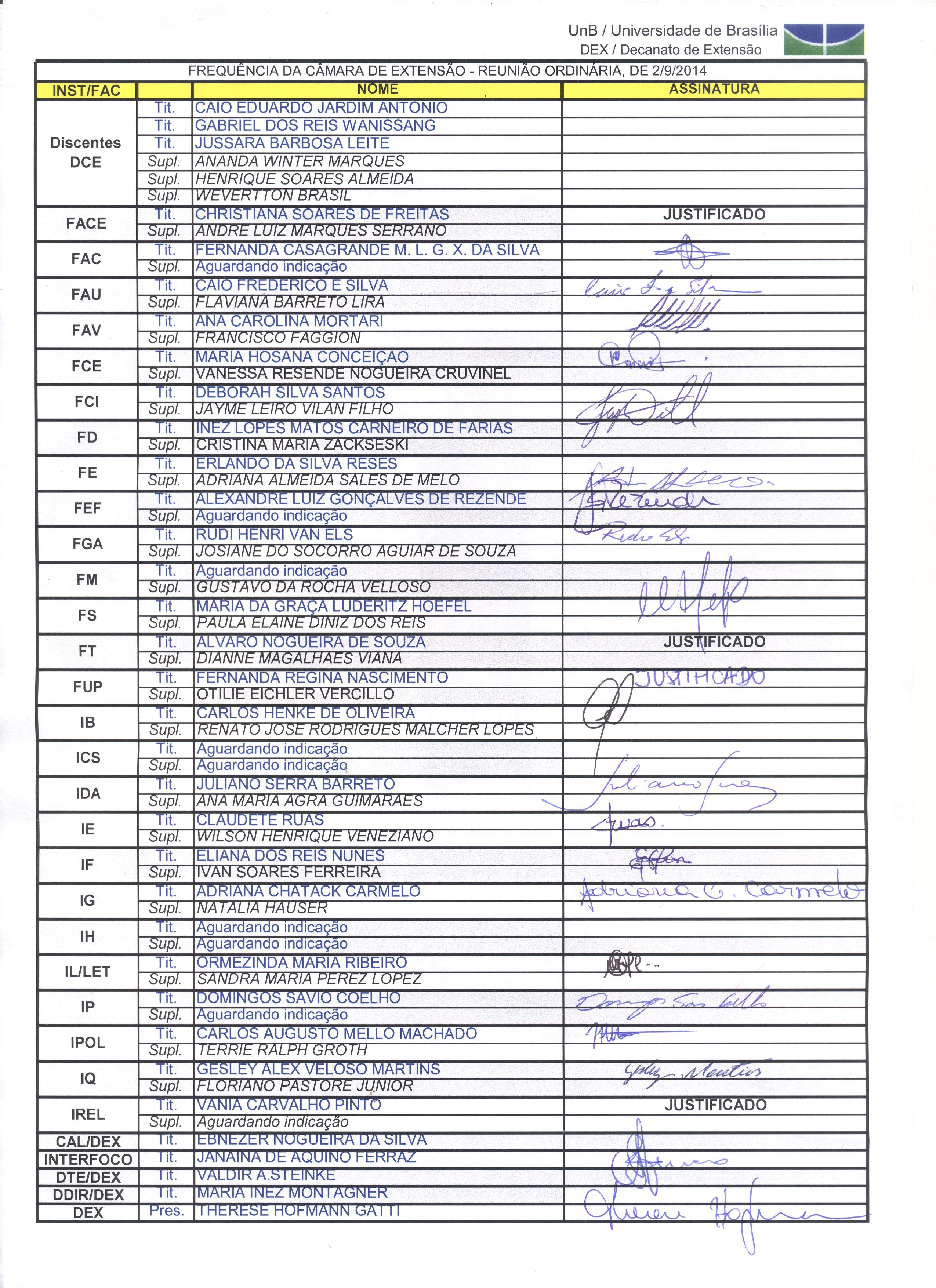 Frequências Reuniões Coordenadores de Extensão 2014